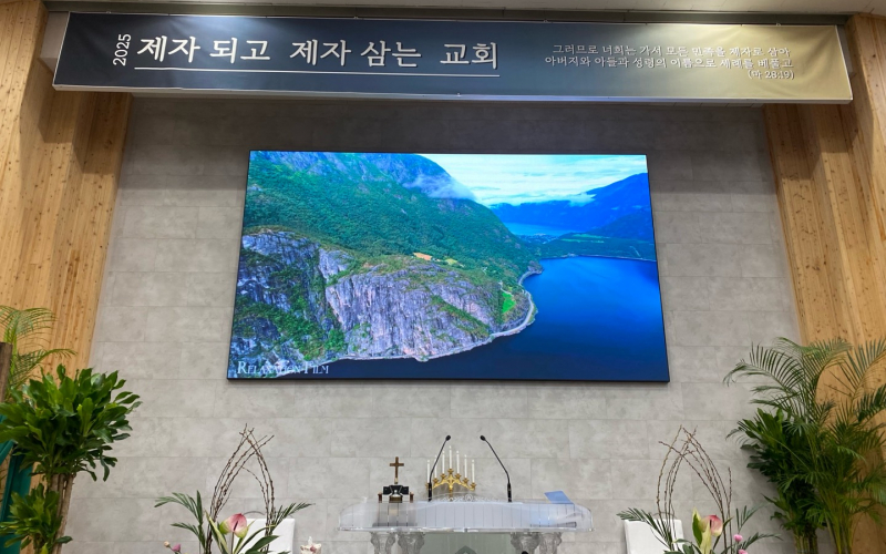 엘로이미디어는 경북 경산시 하양읍 하양교회에 ISA480M64-i25 모델을 적용하여 메인 전광판을 구축하였습니다. 선명한 화질과 안정적인 송출로 예배 중 말씀과 찬양이 모든 성도에게 더욱 깊이 전달될 수 있도록 최적의 예배 환경을 제공합니다.